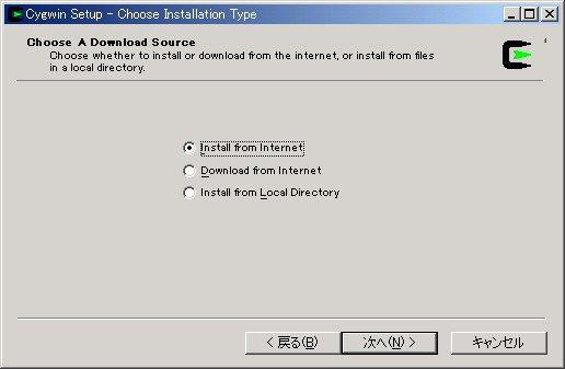 2.次にどのような形式でインストールするかが表示されます。Install from Internetを選んで「次へ」をクリックしてください。